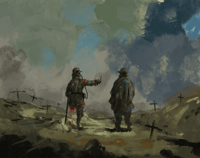 The Interwar period was long and fraught with conflict. Without full mobilisation, border conflicts were constant and unending. Neither side dared do more than probe the other, testing their weakness. Although the constant ash cloud enveloping New Redistan actively shredded the engines of any Blusnian bombers stupid enough to get close, the Blusnian shelling campaigns proved an unending source of stress for the colonists. Despite their constant adversity, the wonders of surface life were simply too many to give up. Real flour, real milk, real sunlight! It all seared their underground-accustomed eyes and skin in the most unimaginably perfect way possible. 44 years passed without major conflict. The death tolls climbed, the colonists lost much, but neither side would mobilise. The patch of uninhabitable land that was the New Redistani/Blusnian border, once a small gash of scar tissue in the land, barely wider than a billboard, had now grown to over 500 metres across. Forgotten soldiers, lost helmets, discarded landmines and failed bombs littered the lands between. The fields served as a museum, showcasing the slow but steady improvements both nations had made to their arsenals over the past four decades. Each side was no longer reliant on ancient surplus, but had instead constructed designs of their own. One contemporary soldier was now equivalent in firepower to ten Great War soldiers.